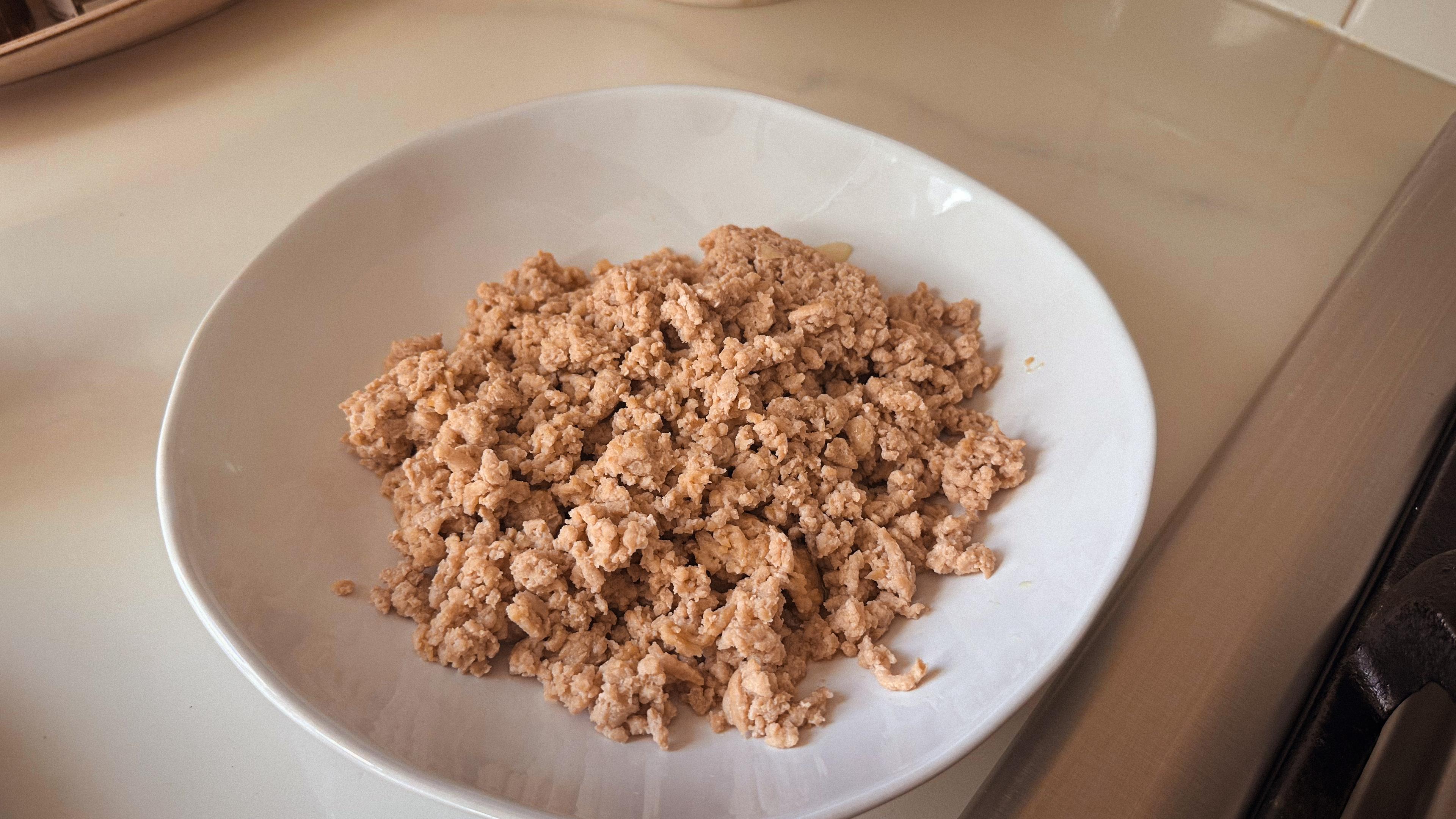 In a large pan or stockpot, heat half the olive oil over medium heat. Once hot, sear ground turkey until browned. Remove from pan and place in a bowl.