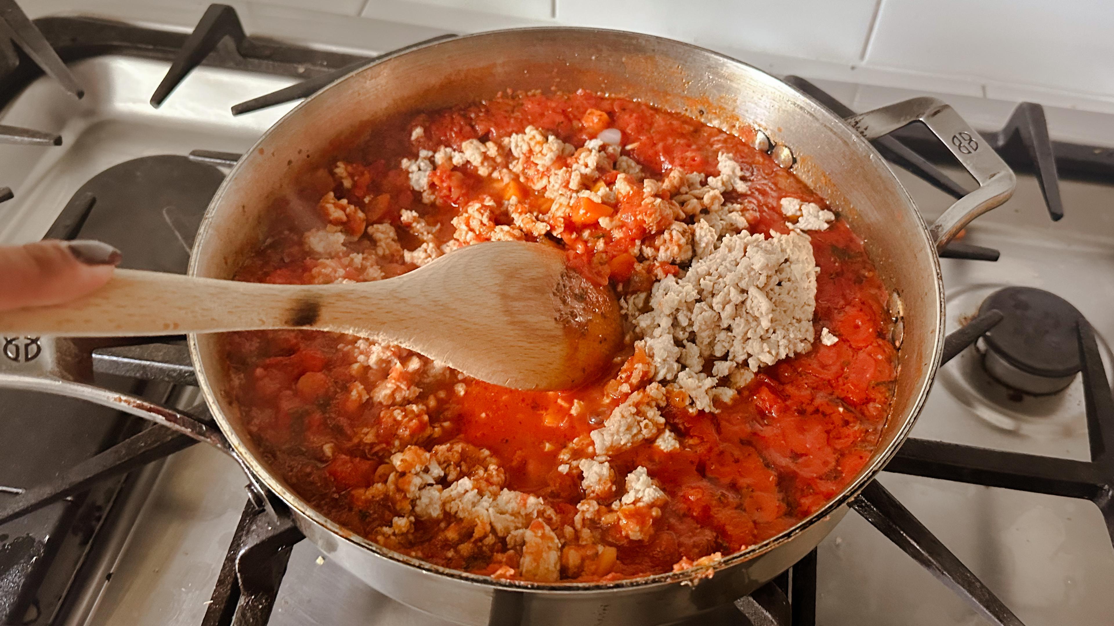 Add the ground turkey back and allow to simmer for another 20 minutes. Add salt and pepper to taste.