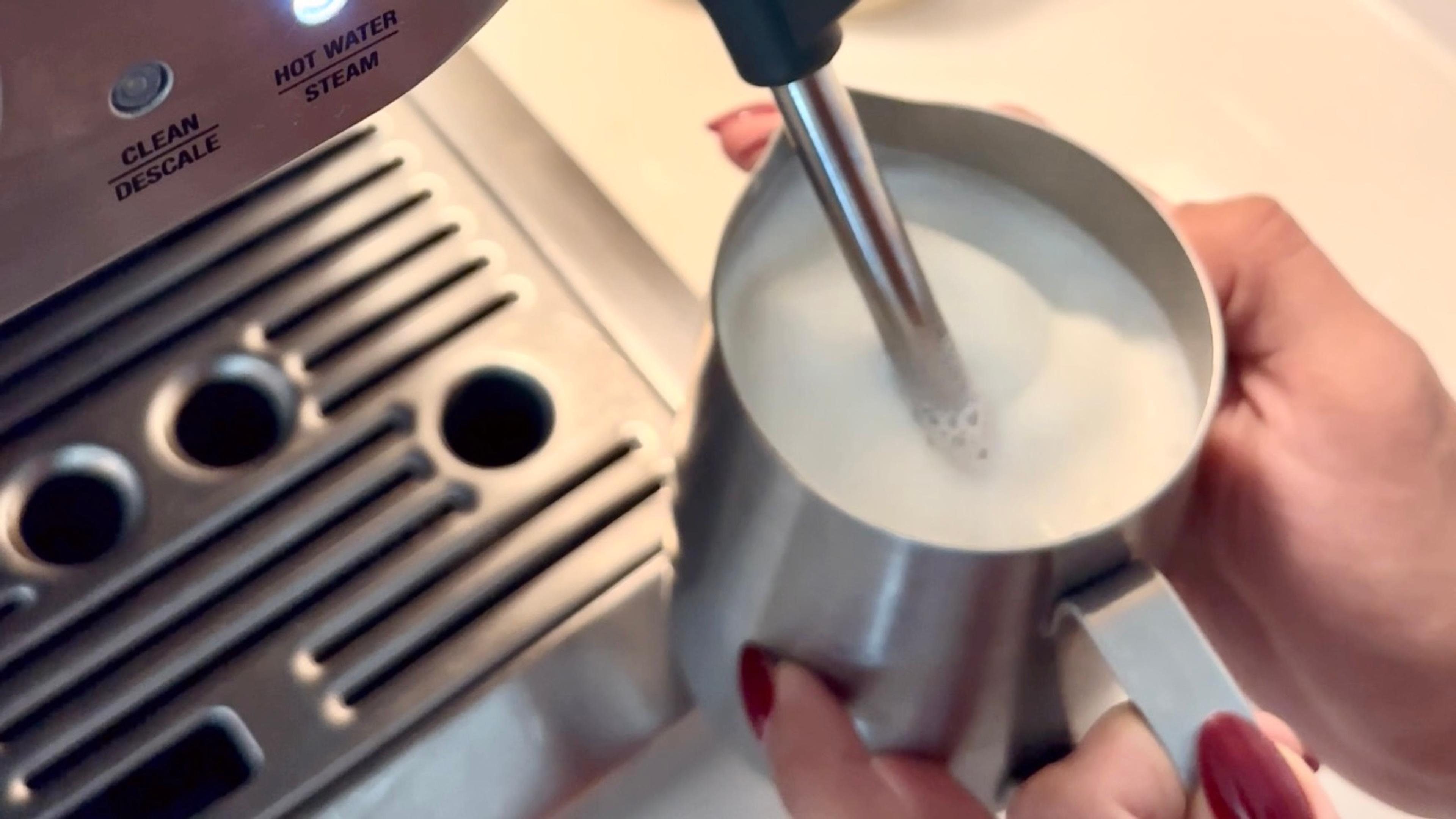 Add vanilla extract to the milk. Steam milk until frothy and desired temperature.