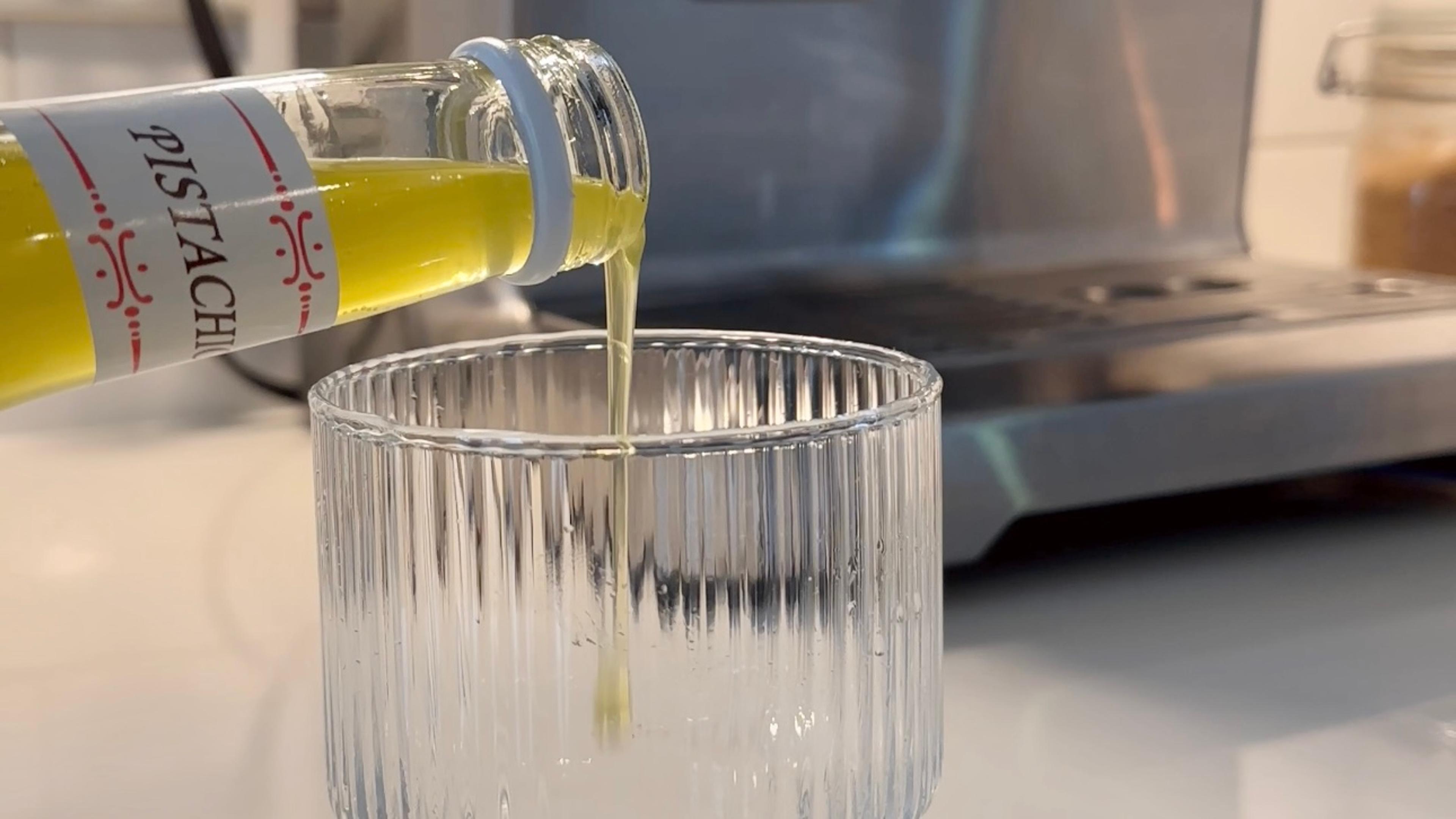 Pour milk over the espresso and pistachio syrup mixture.