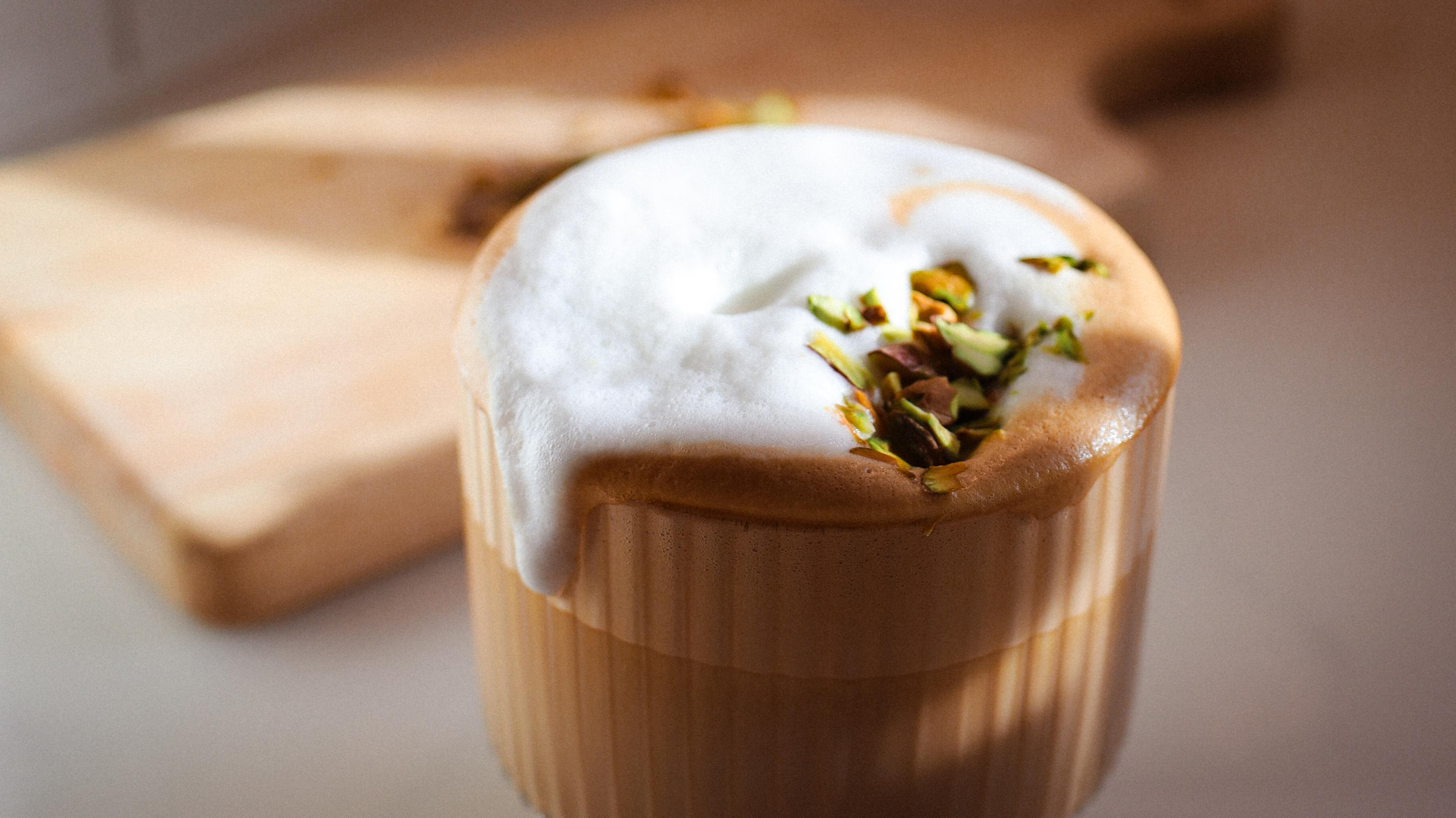 This cozy fall drink features the creamy, nutty and earthy flavor of pistachio. The pistachio syrup is incorporated with the espresso shot, to allow the flavors to melt together. By adding the pistachio syrup to the espresso rather than the milk, it helps prevent the milk from burning and provides a smoother taste.