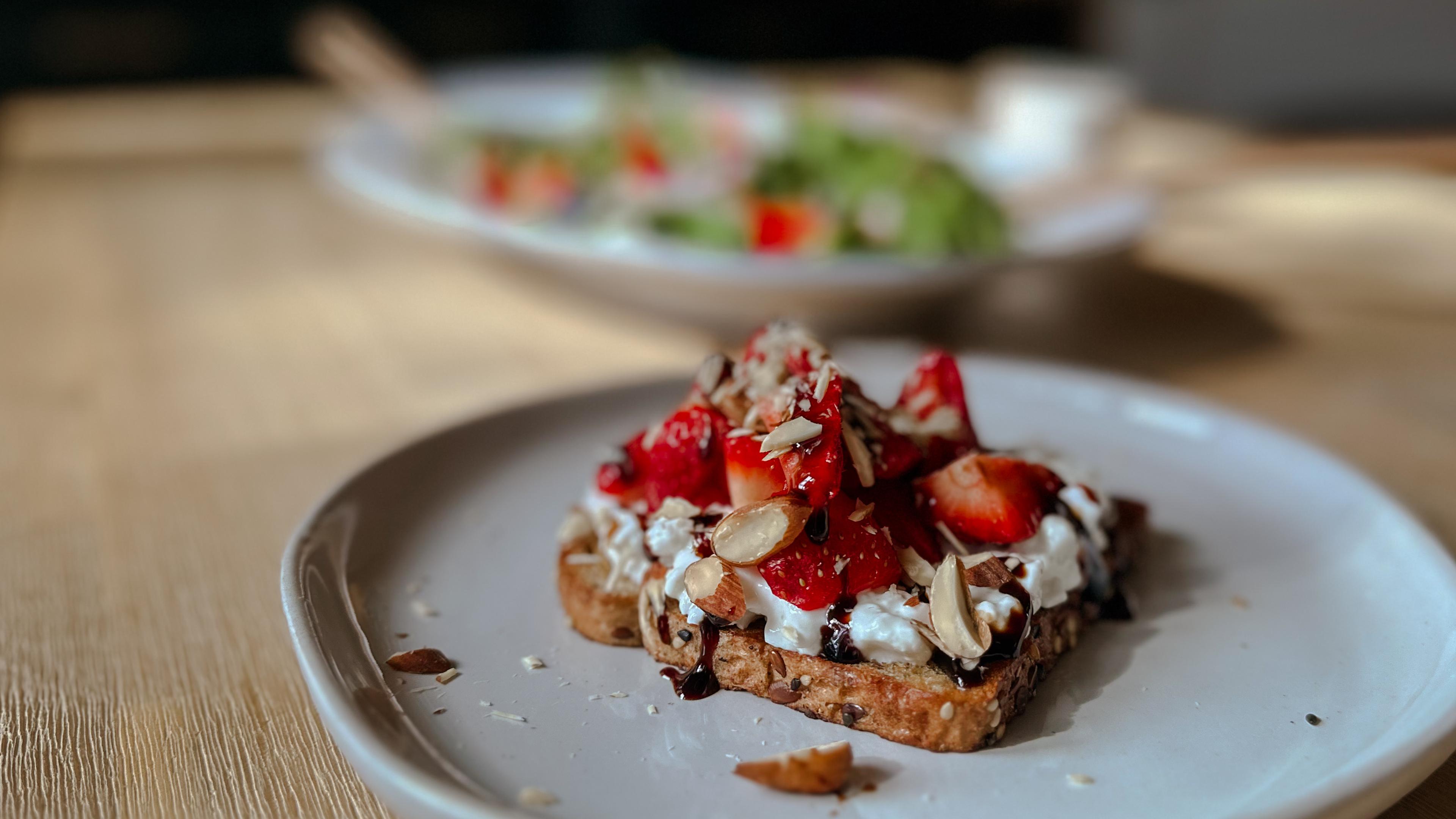 Loaded in fiber and protein, this recipe is a great breakfast or elevated snack choice. Simply toast bread, add a dollop of cottage cheese and sliced strawberries and top with slivered almonds and a drizzle of balsamic reduction.