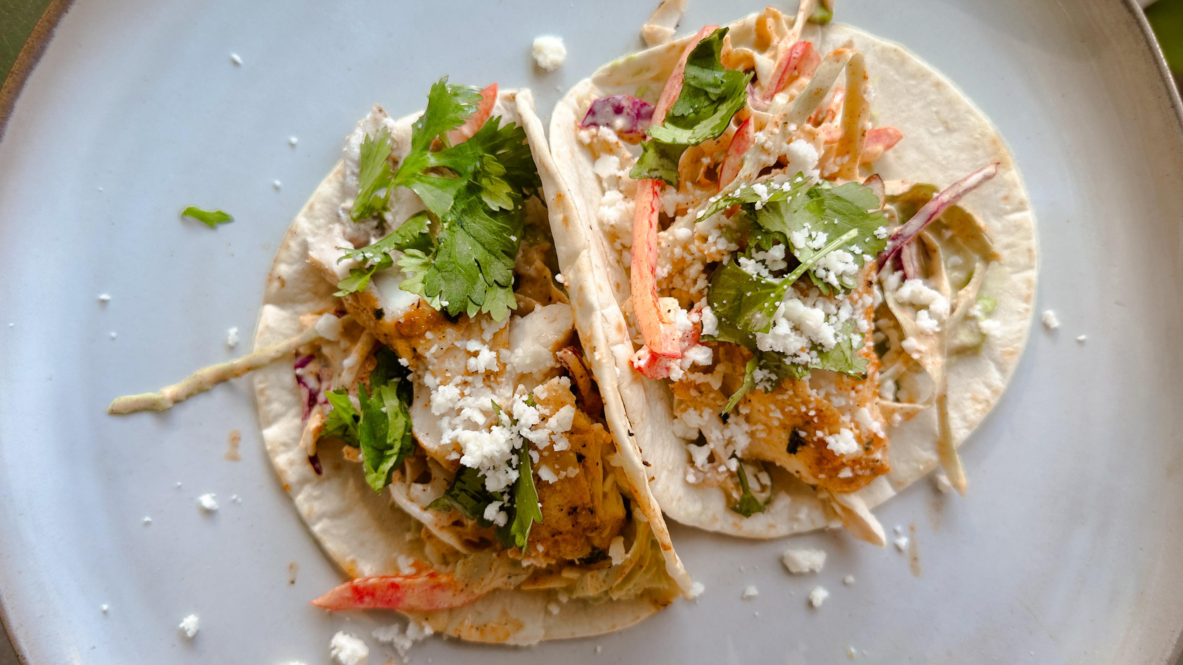 Whitefish Tacos with Red, White and Blue Slaw