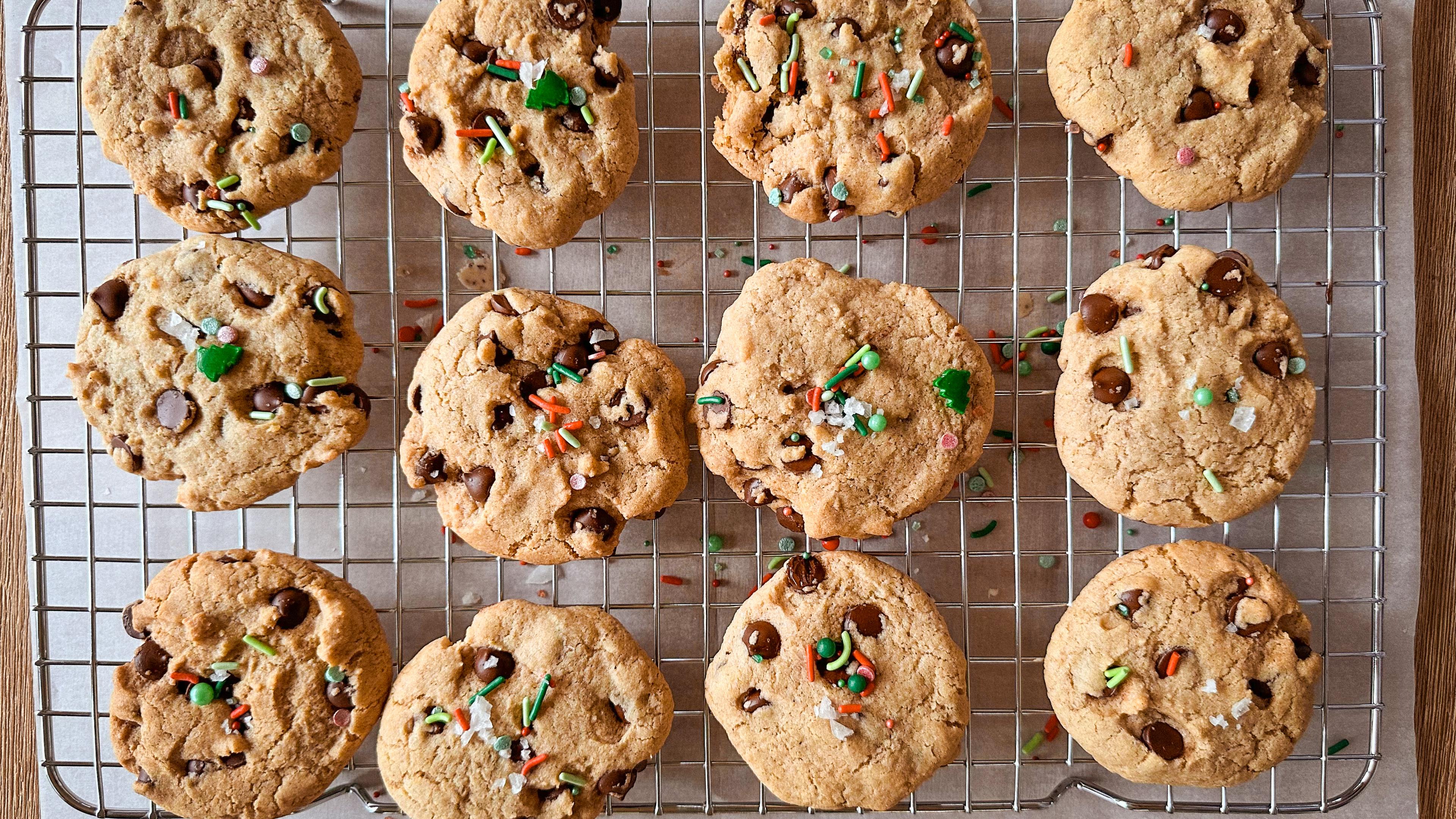 6. Remove from oven and allow to cook on baking sheets for 10 minutes. Remove cookies to wire racks to cool completely. Top with flaky sea salt. Store in airtight container.